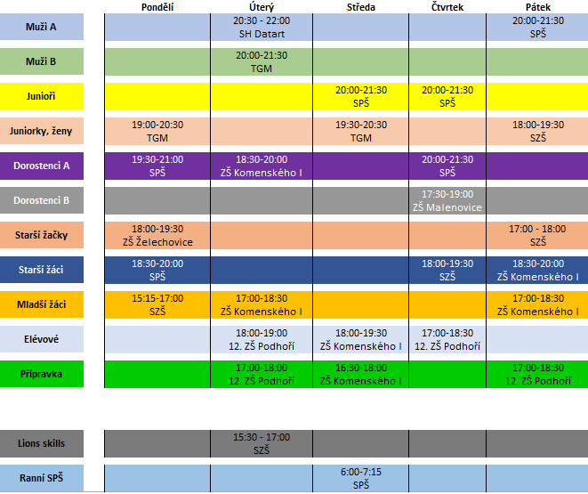Rozpis mladších žáků nedoznal změn, zůstává stejný jako v minulé sezóně. Mladší žáci začínají tréninkem v pondělí 7. 9. od 15:15 do 17:00 na SZŠ.