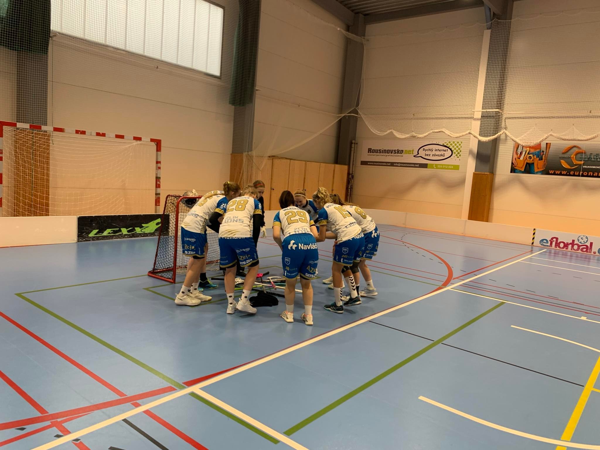 V prvním zápase nás čekal známý soupeř s bývalými spoluhráčkami a blízký soused v tabulce. Věděli jsme, že nás nečeká nic lehkého, zvlášť v takovém počtu, ale soupeř na tom byl podobně a tak to vypadalo na vyrovnané utkání. Od začátku zápasu jsme byli aktivnější, hráli jsme na míčku a to, co jsme chtěli. Chyběla tomu ale přesnější koncovka. Až minutu před koncem 1.třetiny se povedlo skórovat Zuzce Lukovicsové, jejíž přesné nahození z půlky skončilo až v bráně. Nástup do druhé třetiny se nám však naopak vůbec nepovedl. Už po deseti sekundách bylo srovnáno a o minutu později už soupeřky dokonce vedly. Nenechali jsme se ale rozhodit a o chvíli později bylo opět srovnáno, když nabídnutou šanci v podobě trestného střílení využila Emma Sýkorová. Druhá půlka této třetiny se odehrávala v podobném duchu nahoru a dolů. Soupeřky se dostaly znovu do vedení, které se ale povedlo opět dotáhnout, tentokrát díky Lindě Pospíšilové. Už to vypadalo, že se půjde do poslední třetiny za vyrovnaného stavu, ale pouhou vteřinu před koncem jsme znovu inkasovali. Ani tohle skóre nás však nezlomilo a pokračovali jsme v předváděné hře, které však chyběla přesná koncovka. To se naštěstí změnilo. Po začátku třetiny dokázala srovnat Adéla Šebestová a čtyři minuty před koncem otočila průběh zápasu na naši stranu Aneta Krajčová. I přes závěrečný tlak a hru v šesti se nám tento stav povedl ubránit a my tak mohli slavit první výhru nad Brodem i na turnaji. Díky této výhře jsme také přeskočili našeho soupeře a posunuli se na druhé místo v tabulce.