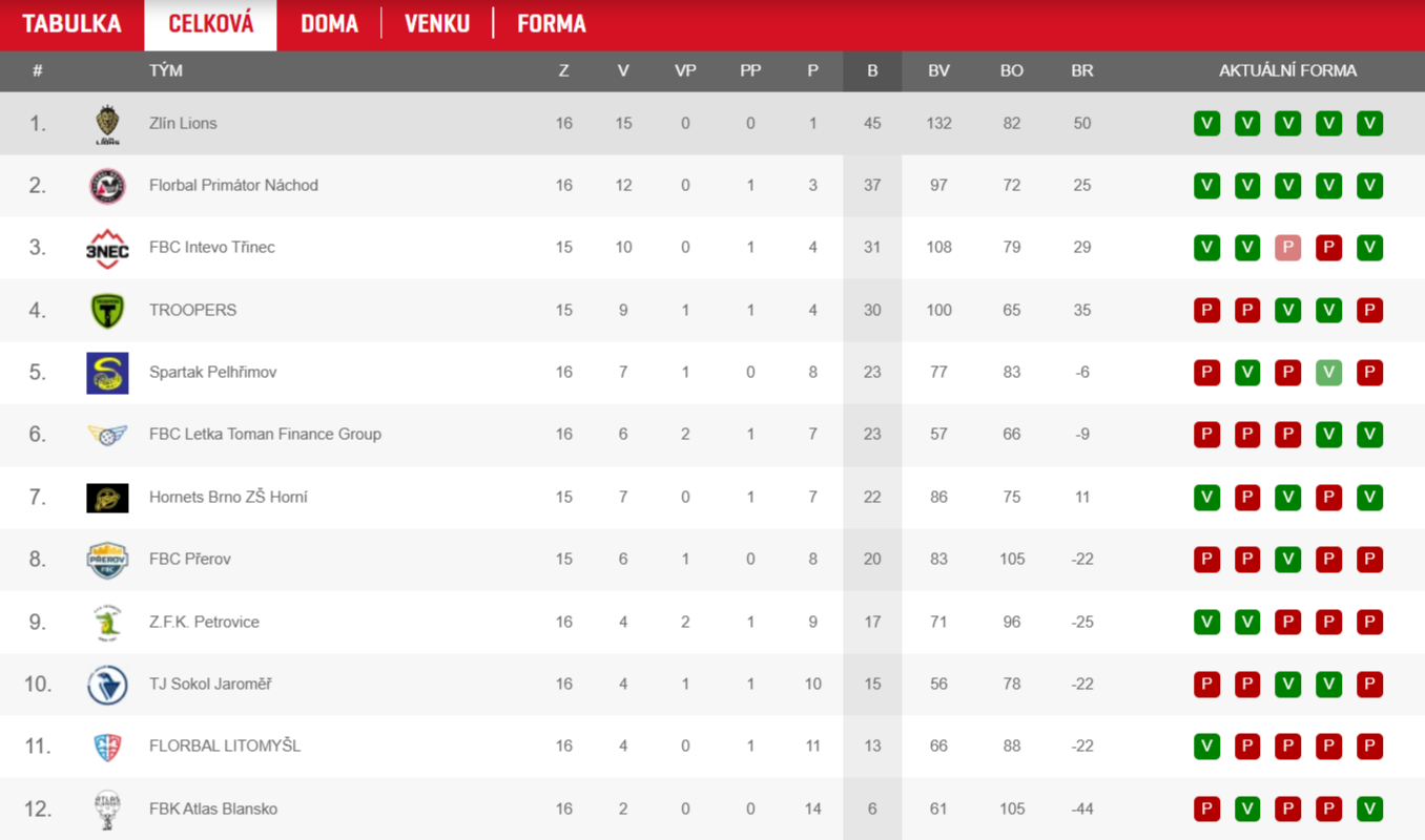 tabulka Národní ligy