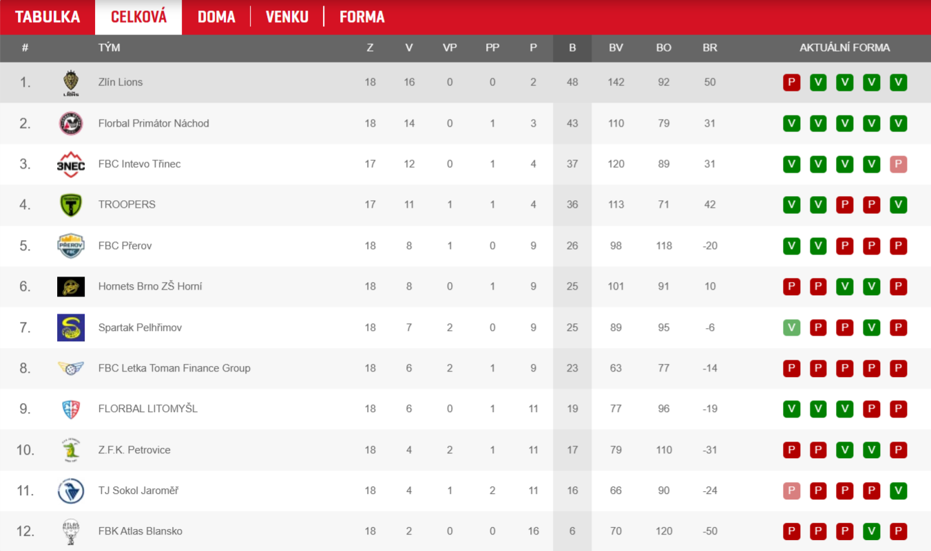 FBC INTEVO TŘINEC vs. ZLÍN LIONS 6:5 (0:2, 2:3, 4:0)