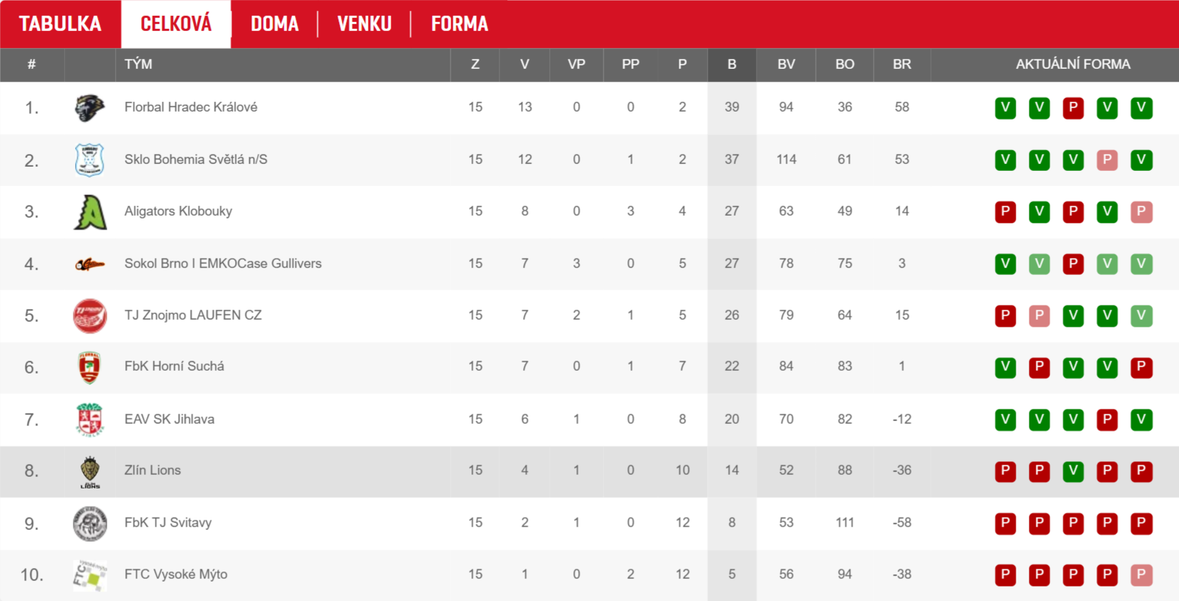 - 8. kolo: Zlín Lions vs. FbK TJ Svitavy 7:3