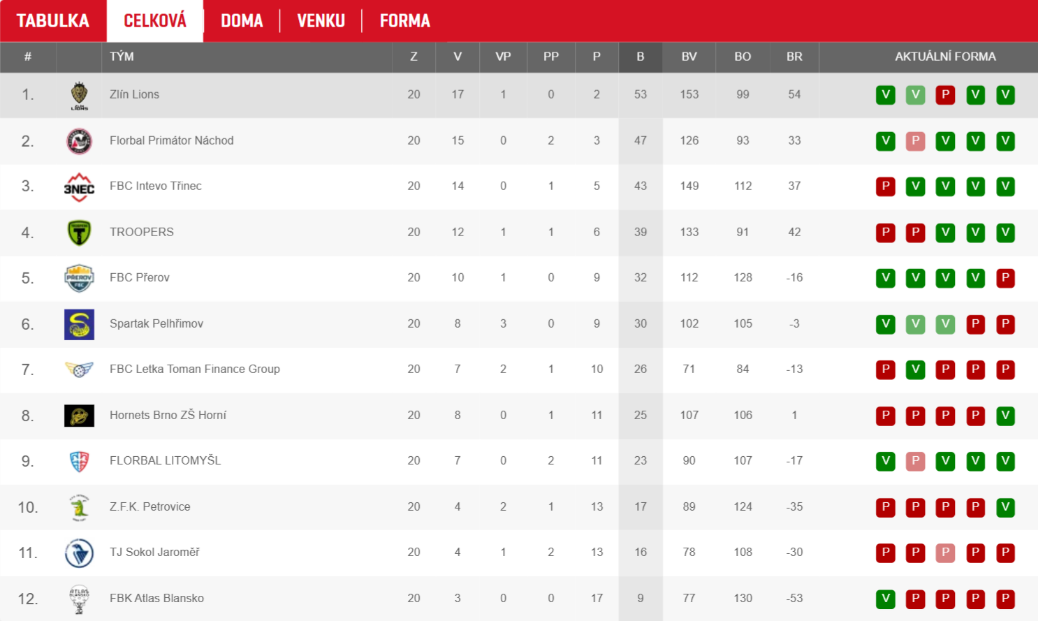 tabulka Národní ligy