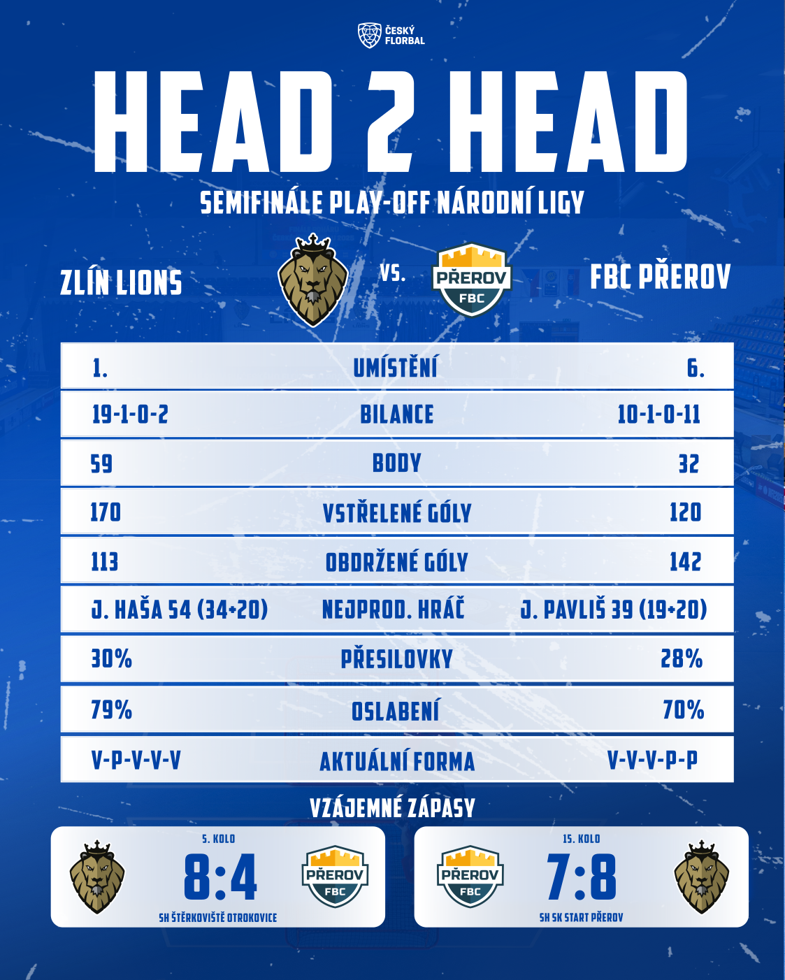 - 15. kolo: FBC Přerov vs. Zlín Lions 7:8